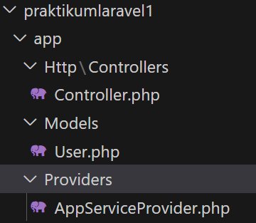 Dan terdapat juga Controller, untuk membuat file baru Controller, dapat mengetik perintah php artisan make:controller NamaController. Controller berfungsi untuk menangani request dan respons, menerima request dan memproses request, kemudian mengembalikannya dalam bentuk data atau view dari suatu model.
