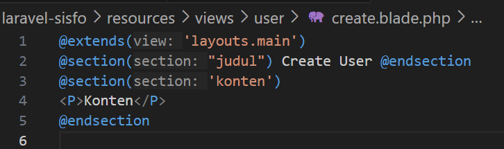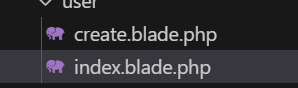 Selanjutnya buat fille dengan nama index.blade.php pada folder views/user dan isi dengen kode