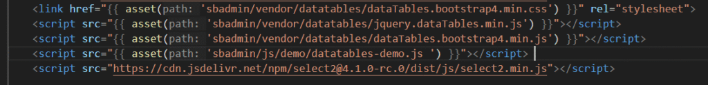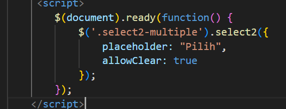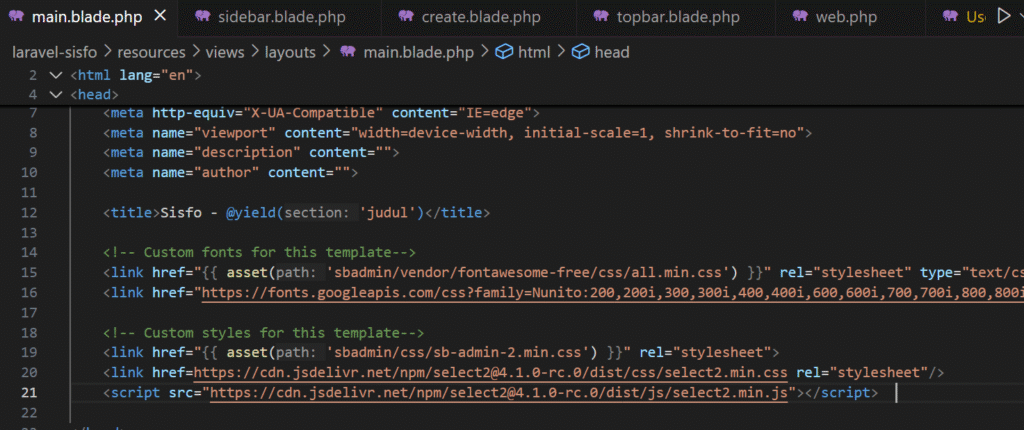Selanjutnya, tambahkan file css dan javascript select2 ke dalam layout main.blade.php
