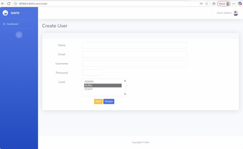 Sehingga tampilan form inputan user menjadi seperti gambar di bawah ini.