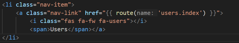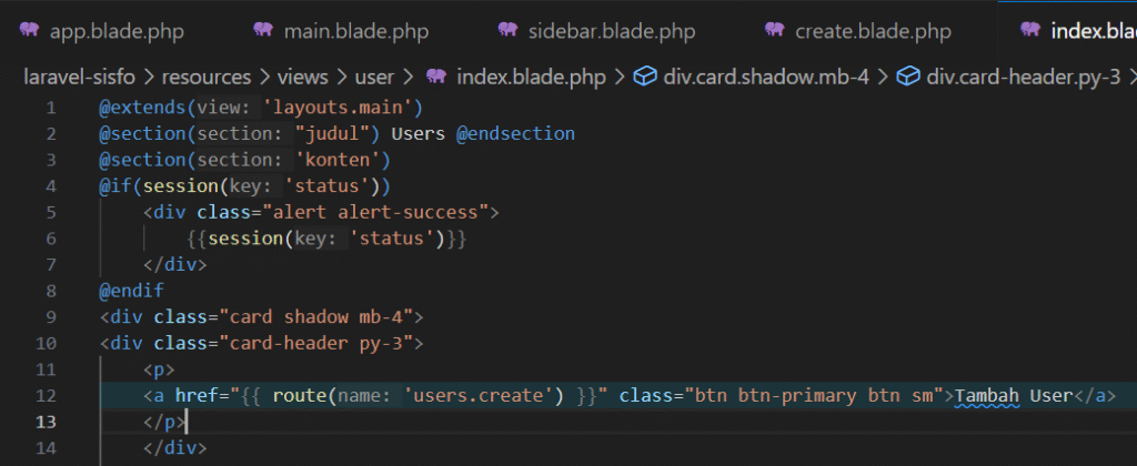 Buka view Layouts/sidebar.blade.php kemudian tambahkan kode program berikut.