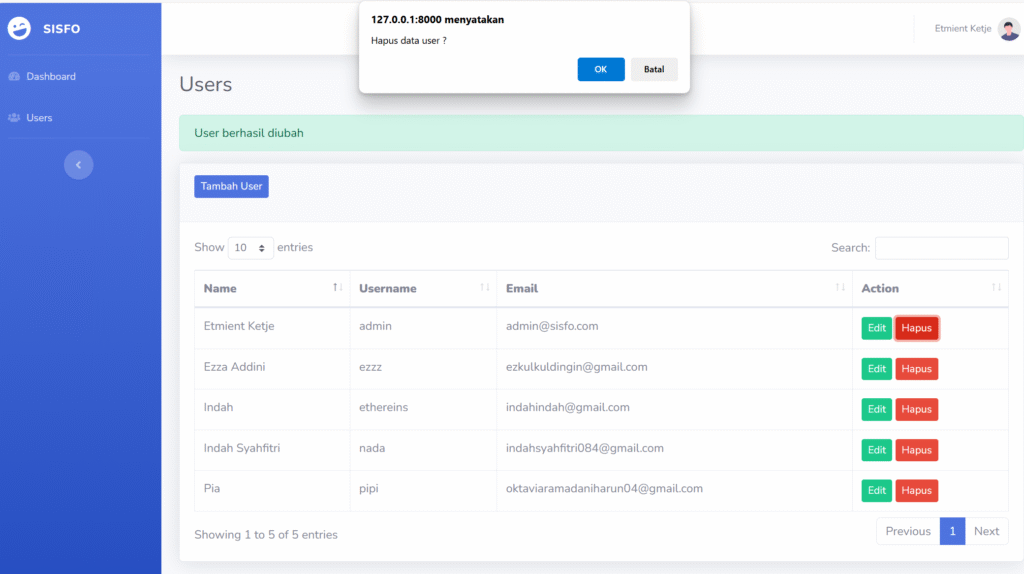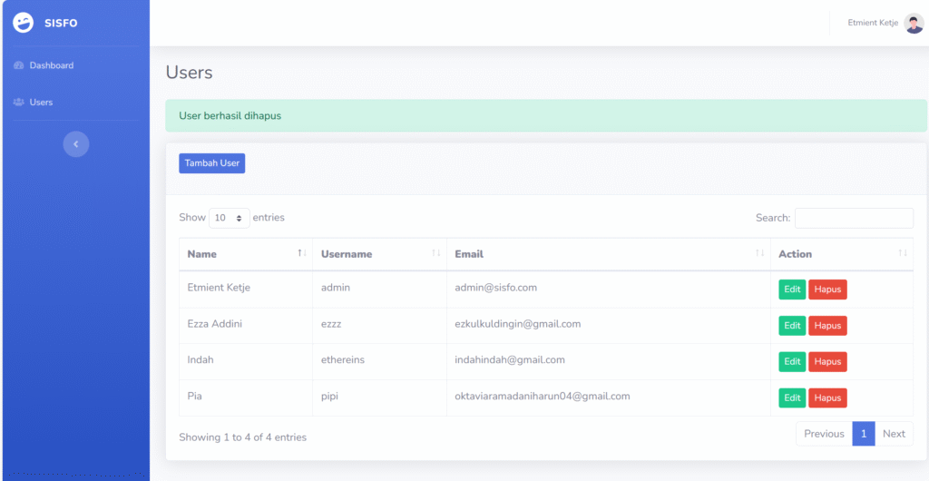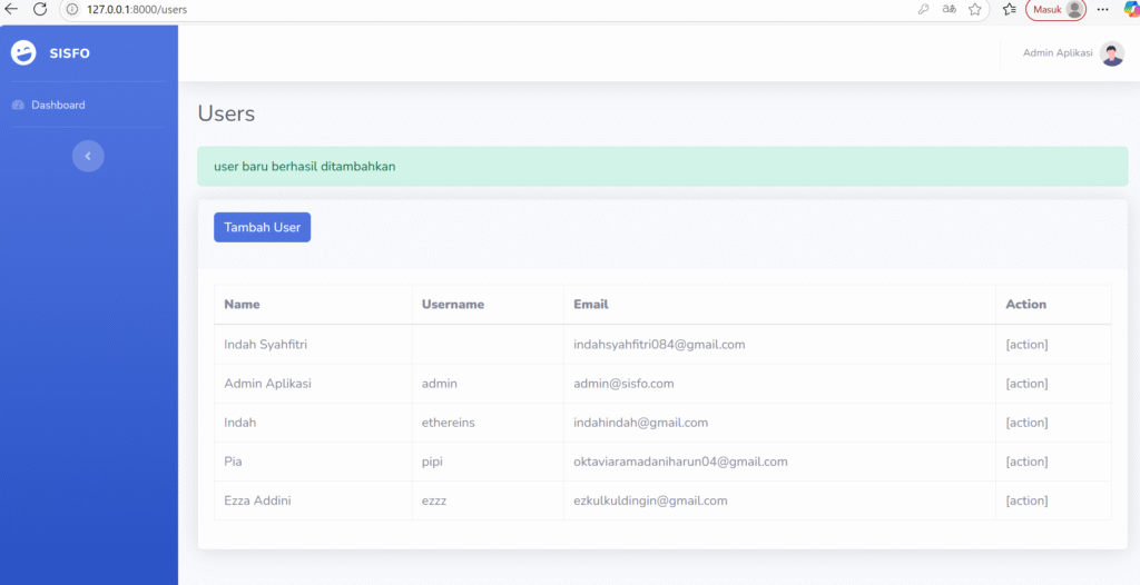 Sehingga tampilan list user menjadi seperti gambar di bawah ini.