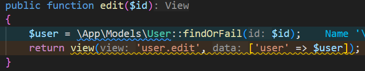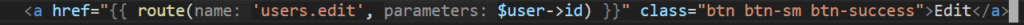 yang mengarahkan pada route users/edit/{user}/edit atau action edit pada UserController untuk