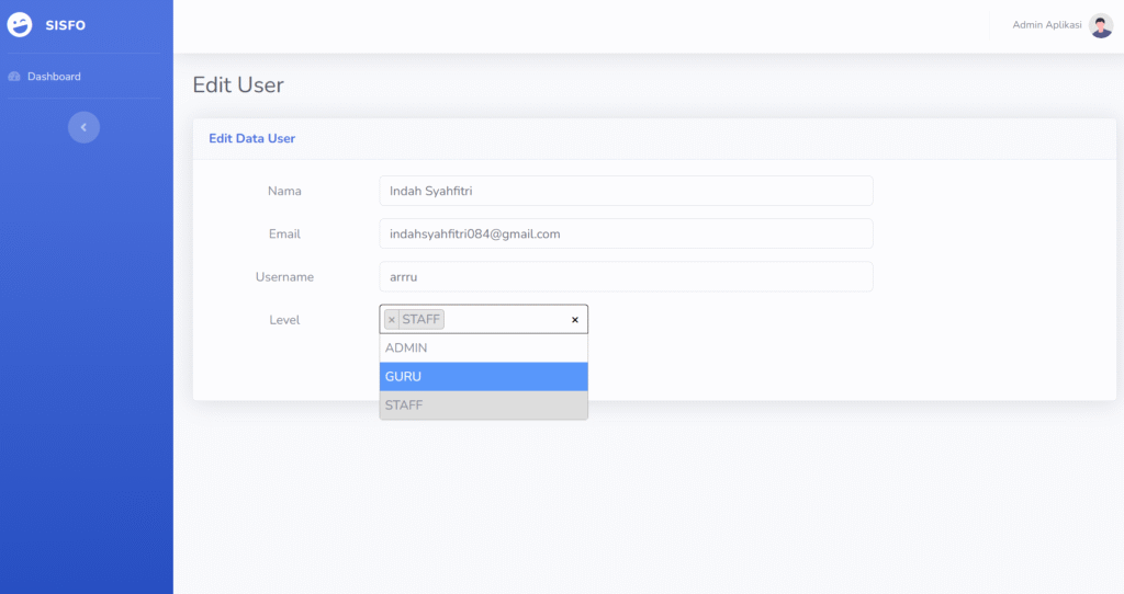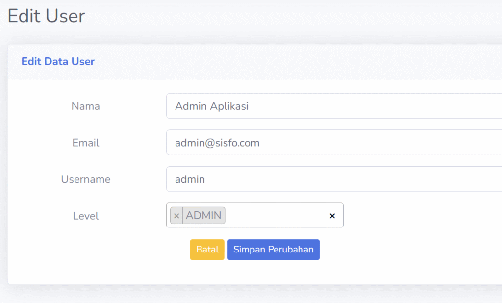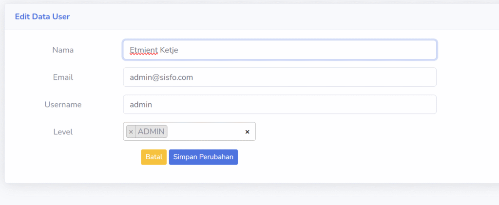 Sehingga tampilan form edit user menjadi seperti gambar berikut ini.